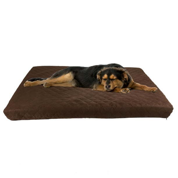 PRODUCT DETAILS – Materials: Microsuede, Polyurethane Foam, and Memory Foam. Dimensions: (L) 44' x (W) 35' x (H) 3.5'. Large Dog Bed with Removable Cover is Recommended for Pets Weighing 65-110 pounds. Color: Brown.